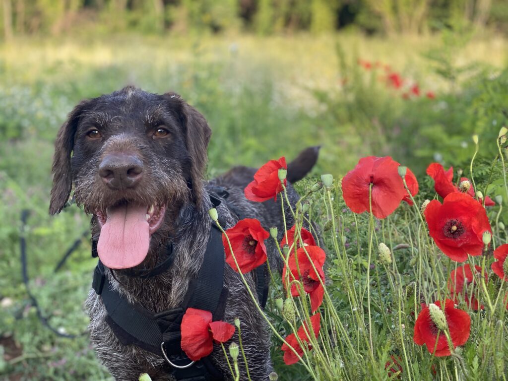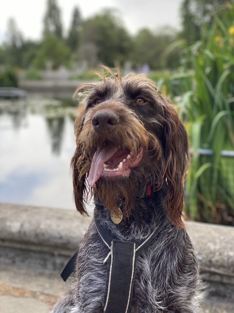 I continue to enjoy playing at scentwork, obedience, urban agility (dog parkour), canicross, heelwork, trick training, gundog inspired (retrieve / whistle exercises) training, and dock diving with 11 year old Stevie, a German Wirehaired Pointer and all round golden dog. Since Jackson left us we homed two more young adult male rescue dogs – Vinnie, a pointer from Budapest (who had been kept on a chain / wire before escaping and was completely shut down when he came to us) and Harry, a GWP/GSP cross from Turkey (who was also found on the street and is still slightly worried about life and craves love). I am working on incorporating my learnings from Tamryn Fudge (The Shamanic Dog Trainer), Dr Isla Fishburn (Shamanic Practitioner, Kachina Canine) and Dr Marta Niccolai (The Foundation for Shamanic Studies) into our lives and interbeing, as well as still using some of the more traditional dog behaviour training and exercises that I learnt during the (Stevie &) Jackson era.